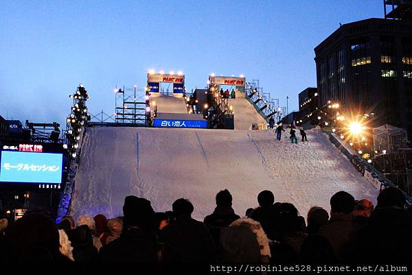 白色戀人滑雪台此刻擠滿了觀眾,精彩的滑雪競技就要展開!