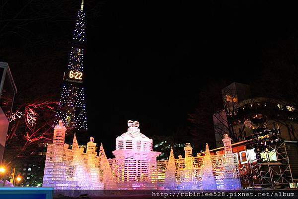 2丁目的ハートの宮殿冰雕搭配背後電視塔,白天已經夠美沒想到晚上更夢幻!