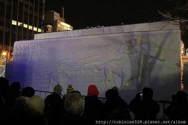 沒錯!! 原來入夜後這雪雕就變成大型投影幕,投射畫面後再搭配立體音效。