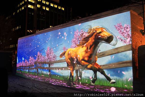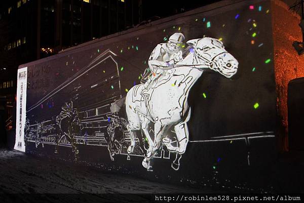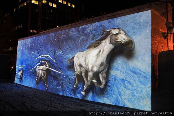 播放的動畫巧妙融合在賽馬雪雕上,更添立體動感。