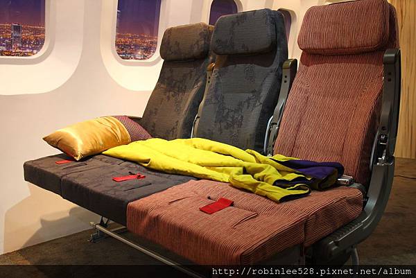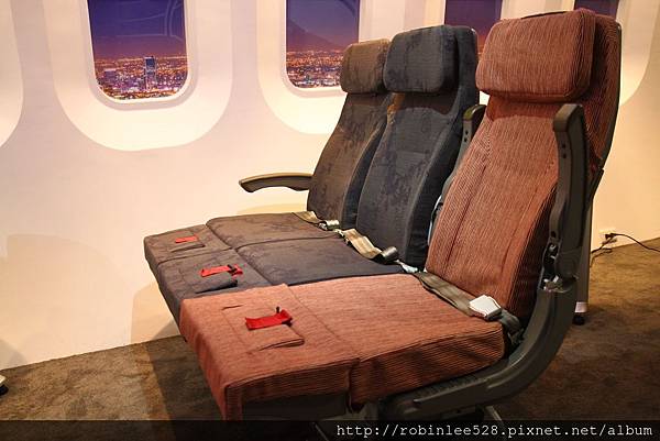 而這次經濟艙產品最大亮點非"親子臥艙"莫屬! 部分座椅設計可抬式腳靠,抬起腳靠拉起扶手就成了沙發般的臥鋪。