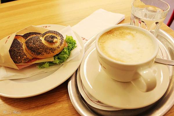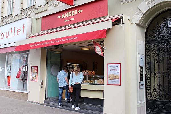 在地鐵維也納西站附近有家ANKER,奧地利知名麵包店。各種麵包、三明治琳瑯滿目,這樣一份早餐加咖啡大約5歐元。