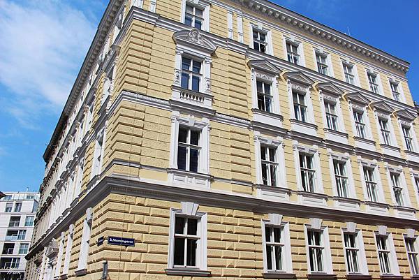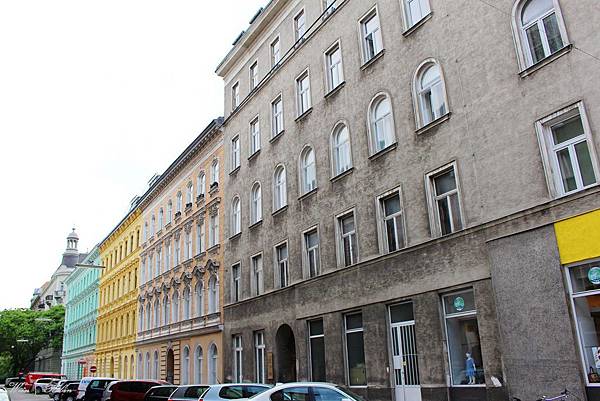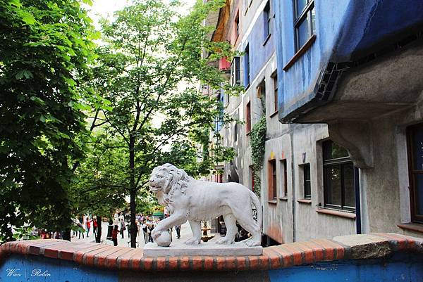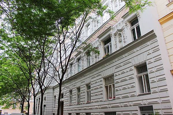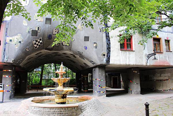 目前這裡已成維也納的知名景點之一,初夏早上的維也納猶有涼意,在綠蔭下漫步欣賞百水公寓非常舒服。