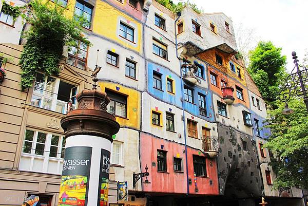這繽紛奇趣的公寓是由奧地利藝術家Friedensreich Hundertwasser所設計,據說這裡每一扇窗戶都長得不一樣,地板和牆面線條都彎曲不平。