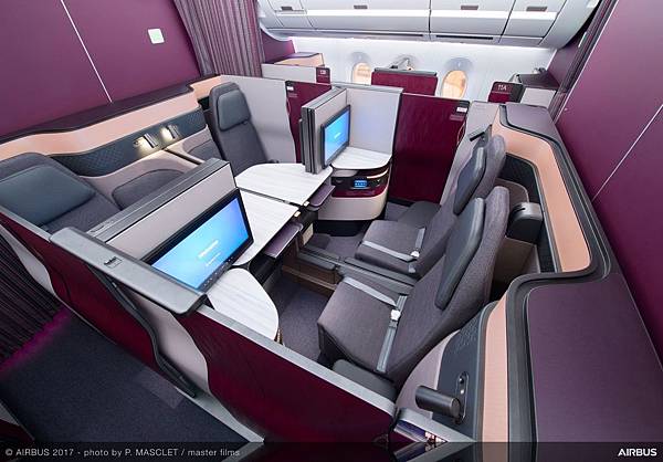 卡達航空A35K內裝採用自家最新旗艦設計,包括去年中才啟用的"Qsuite"商務艙。