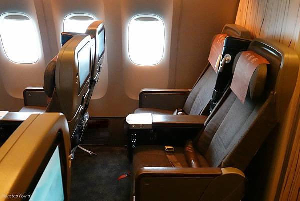 入座豪經艙的話登機時就不須拿取艙門邊的經濟艙耳機了,因為豪經艙使用專用耳罩式耳機,不過近幾次搭乘華航的777發現有些座位的耳機孔出現鬆動或接觸不良的情形。