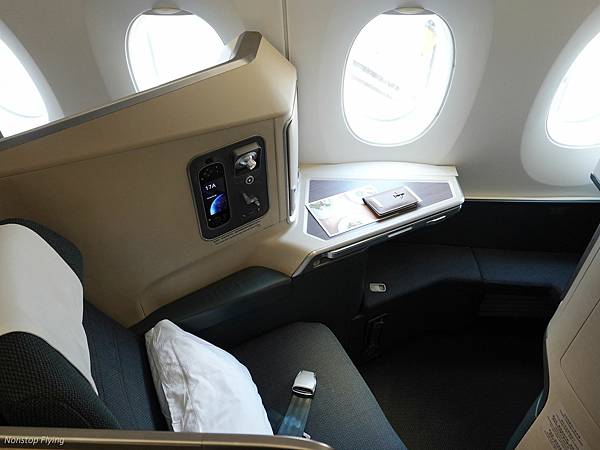 今天商務艙的組員相對比較年輕,但不失專業,順暢地在短暫航程中完成各項服務並保有親切熱忱,餐點也簡單而美味可口。而硬體更是水準保證的A350商務艙,整體來說是相當舒服寫意的一段飛行體驗。