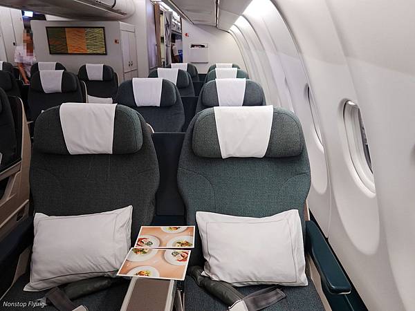 這趟航班從原本反魚骨式商務艙「降格」成區域型座椅,讓人一開始就有些失望,但組員的表現很快便扳回了分數,搭乘國泰不常遇到日籍的ISM,實在印象深刻。而餐點內容尤其是那塊牛排更令人眼睛一亮! 沒想到飛行生涯中遇到前幾名的商務艙牛排竟然出現在匆忙短暫的港台線上!